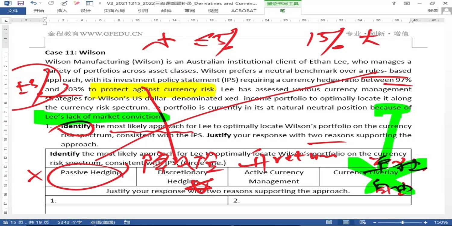 包含CFA三级传统在线课程相关提问答疑;