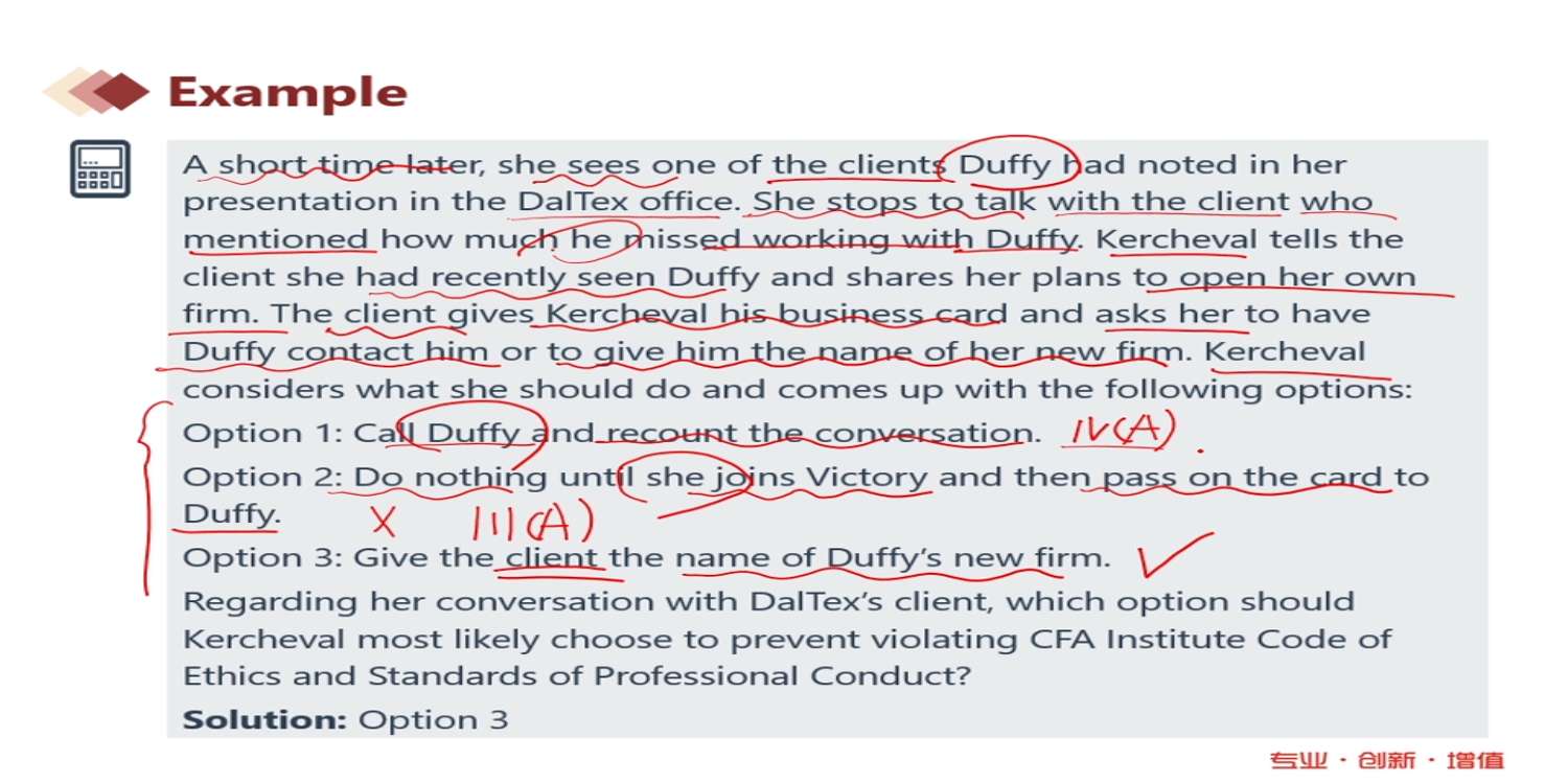 我觉得这里option2不对是因为名片(客户联系方式)是属于雇主资产,不能带走诶