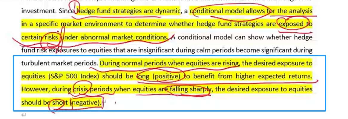 截图中我标记的蓝色框框内容,感觉和解释conditional factor model如何帮助主人翁解决疑虑无关嘛,就是举例一个常规情况——动荡少配股票、正常多配股票;实际回答应该只需要解释清楚conditional factor model是如何结合哑变量作出判断的就行了啊