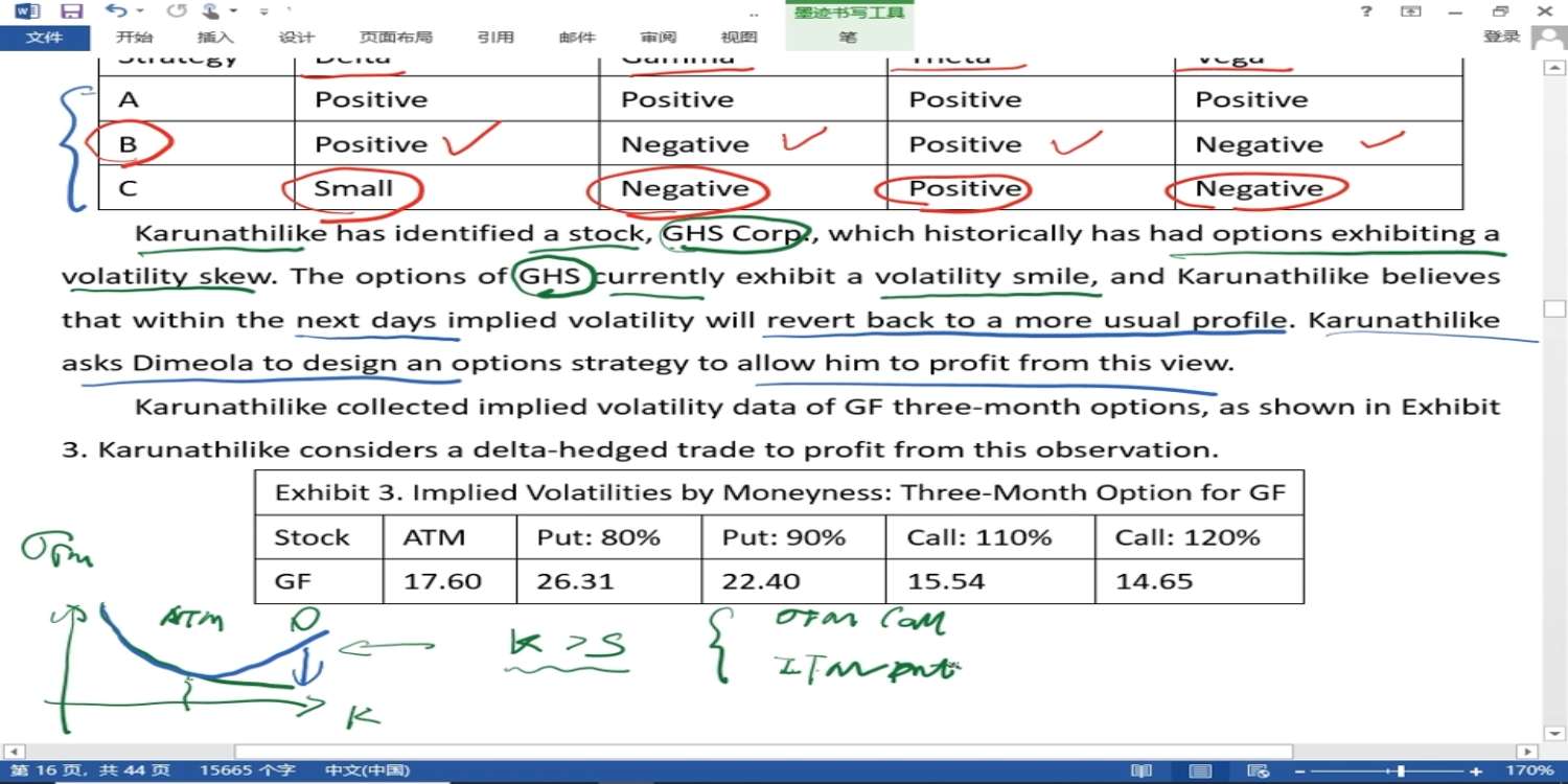 Q3,解析中说“卖出25-delta的看跌期权(OTM)将限制日元升值(欧元贬值)的上行潜力”该怎么理解? 应该是sell put的话,相当于欧元越跌我越赔,但是欧元跌相当于日元涨,所以是无所谓的。对吗? 如果A的后半句的话,sell call相当于,欧元越涨越亏,正好冲抵了购买看涨期权的意义,所以A是错的。这个理解对吗? 另外risk reversal的图像应该是什么样的呢?