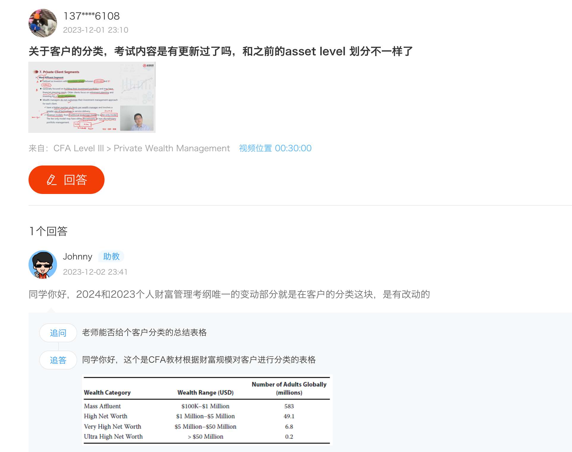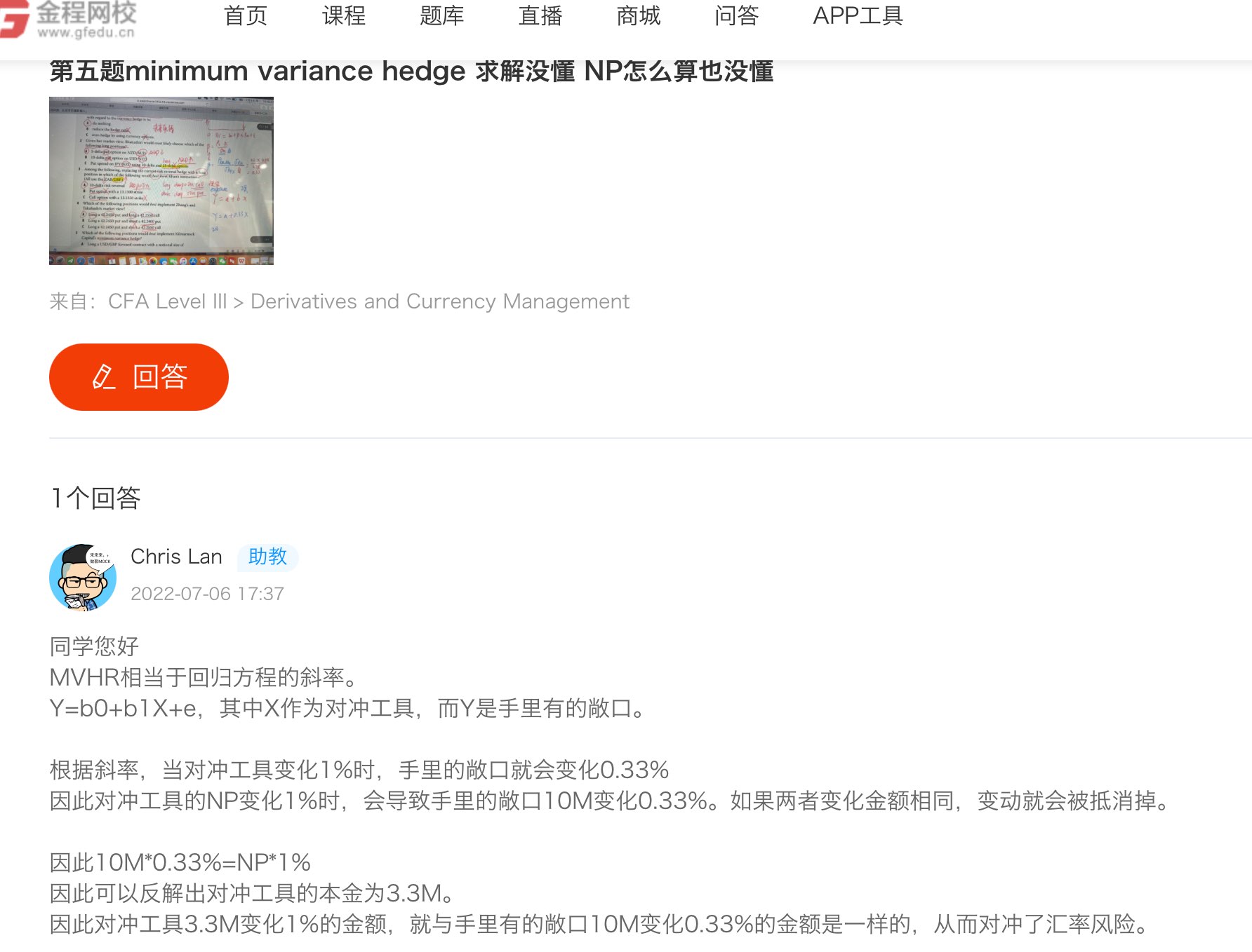包含CFA三级传统在线课程相关提问答疑;