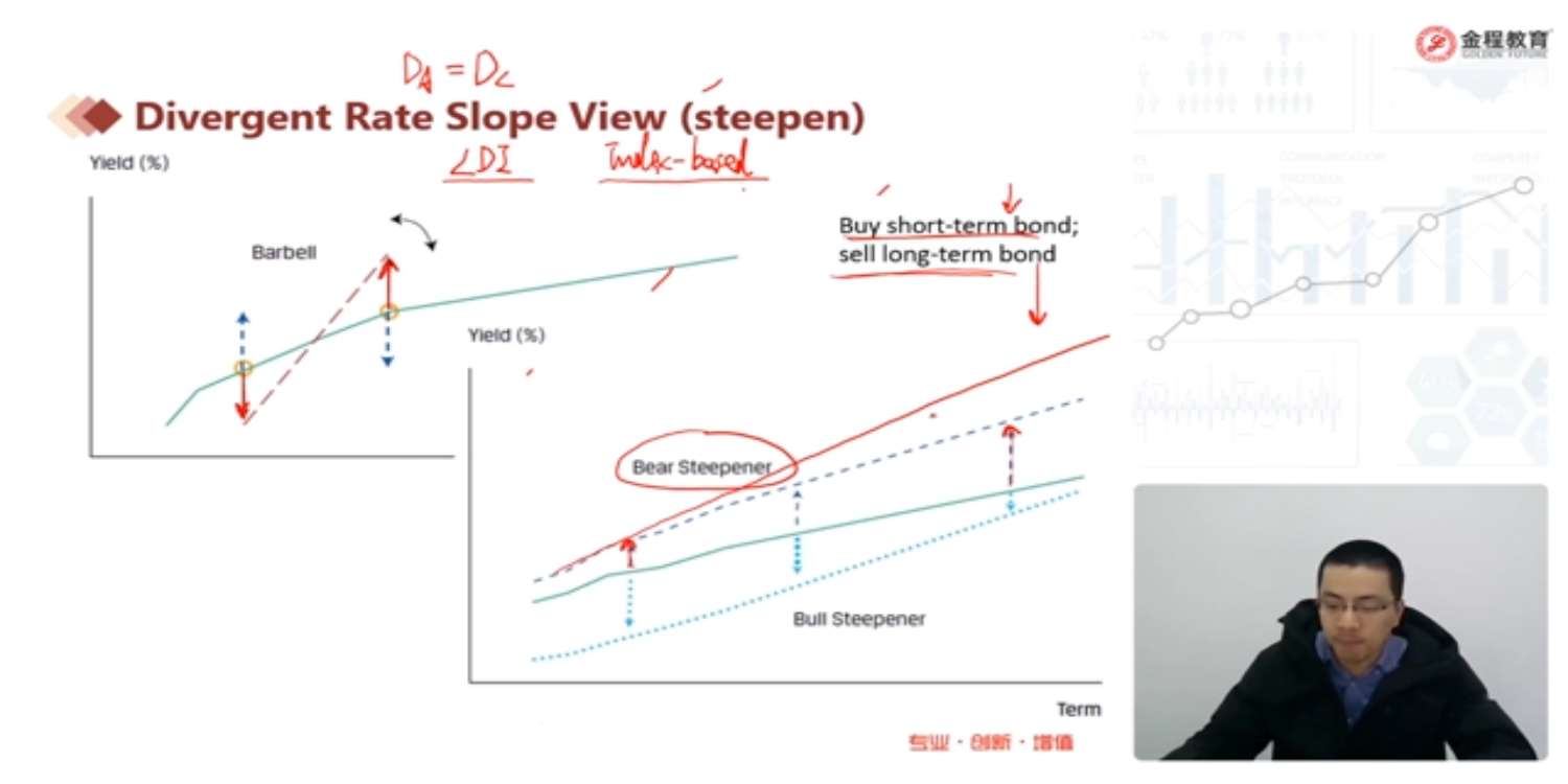 老师这里说bear sttepener策略下,应该降低duration,最好duration为负数,duration为负不就是收益率上升,价格也上升,我买入才赚钱啊。为什么老师说duration为负数,债券下跌,我赚钱?