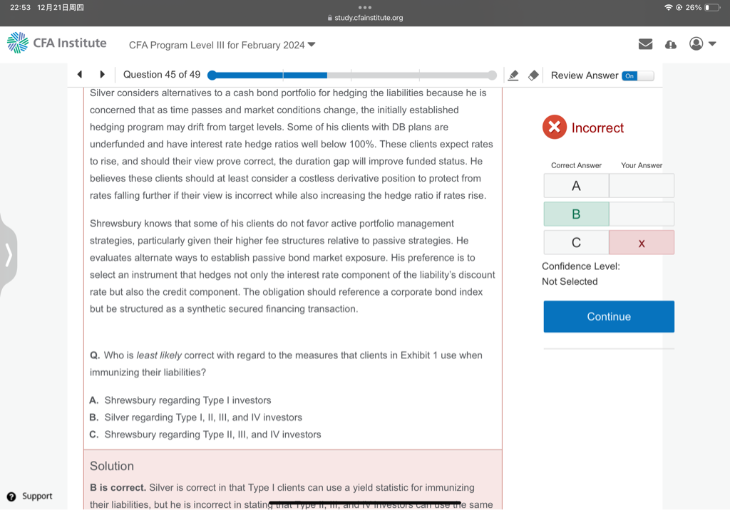 包含CFA三级传统在线课程相关提问答疑;