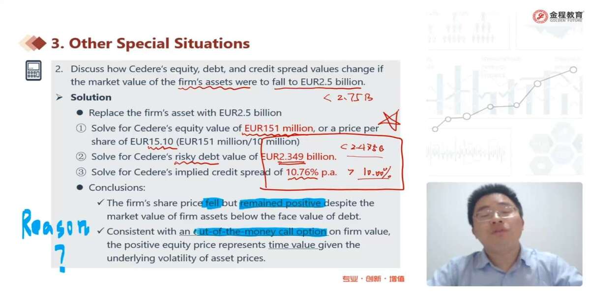 这里资产是2.5billion,而debt是2.349billion,应该是轻度in the money啊,为什么结论是out of the money?