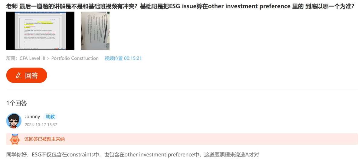 CFA问答包含CFA在线课程、CFA通关课程、CFA试题等所有CFA相关问题,每个问题老师均会在24小时内给出答疑回复哦!