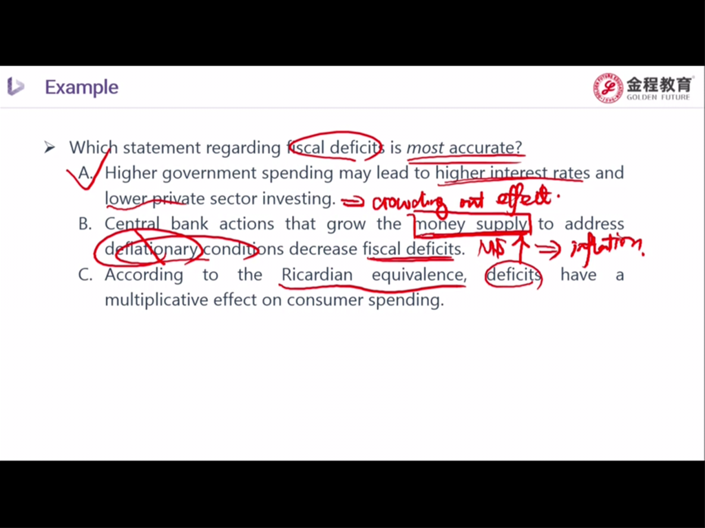 B选项说增加货币供给用于处理通货紧缩,这个错在哪里呢?