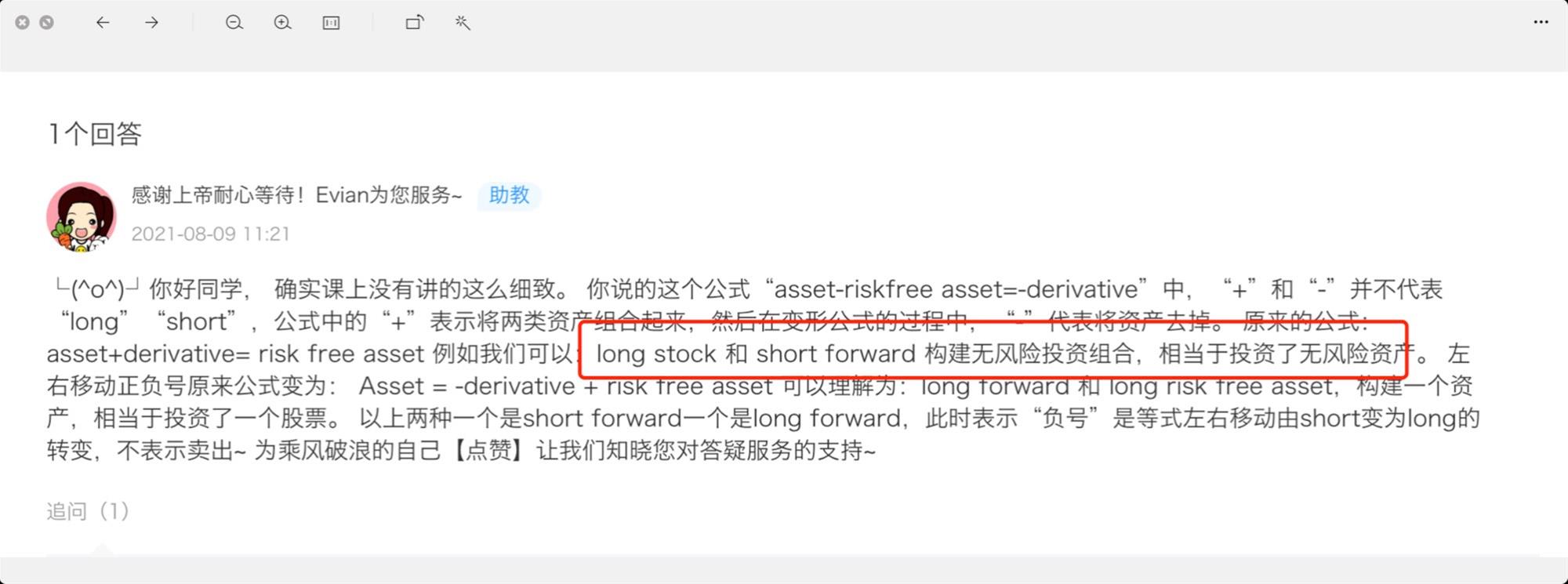 CFA问答包含CFA在线课程、CFA通关课程、CFA试题等所有CFA相关问题,每个问题老师均会在24小时内给出答疑回复哦!