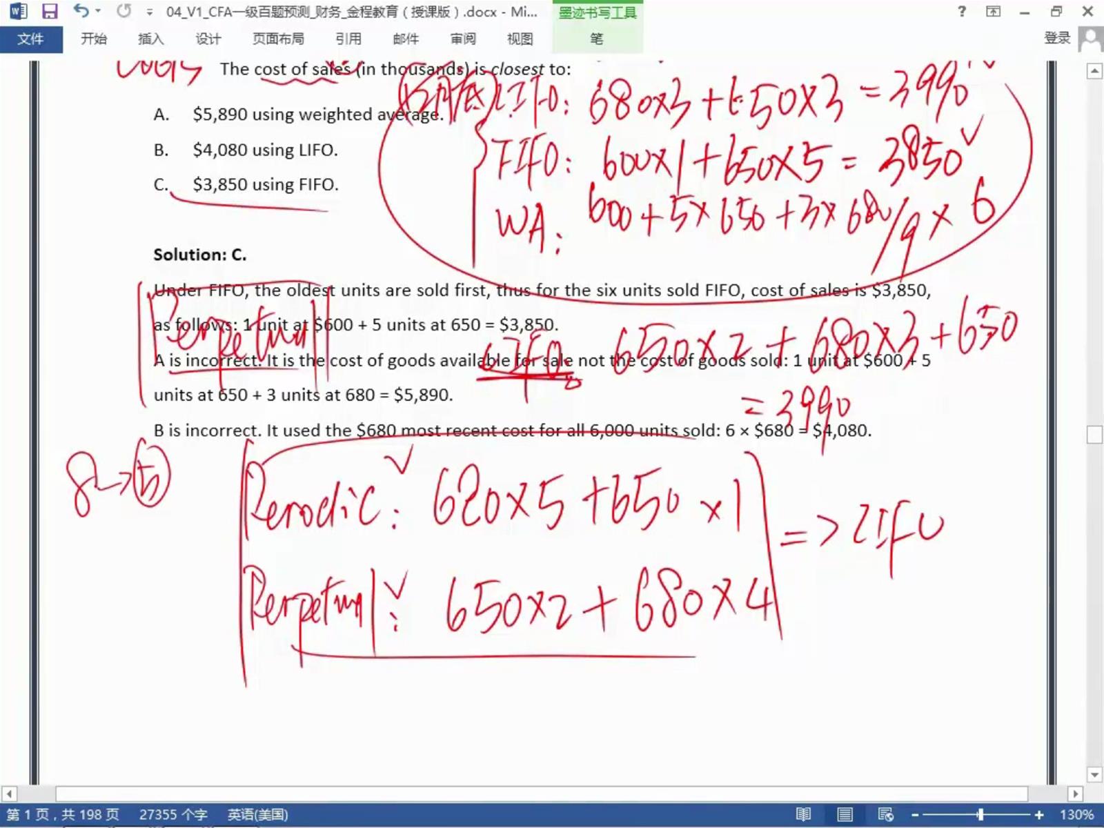 老师改了题目这里没明白,periodic是按月盘点,那11月卖了的4个找8月买入的,五月卖出的还是找2月买入的呀?怎么会变成680*5呢?(老师把八月买入改为5个以后定期盘点的情况)