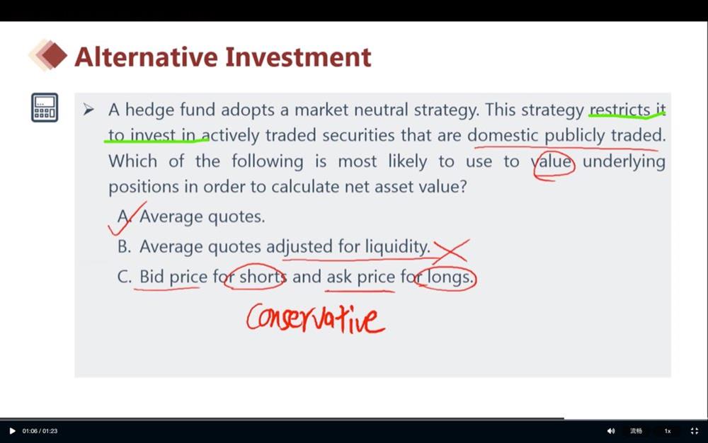 这个restrict to invest in traded securities that...,翻译应该是限制去投资公开交易的债券啊,怎么会是只能去投资公开交易的债券呢?严重怀疑这道题出得有问题,答案是错的,应该是B啊?另外,这个老师把答案3讲错了,太不严谨了吧,这道题简直是混蛋!