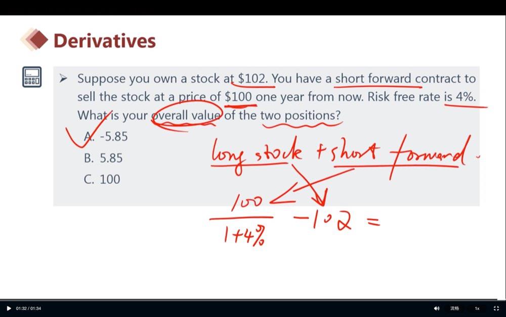 查看试题 已回答1. 怎么判断是short方还是long方呢?持有股票不就是买入了股票是long方吗?为何图二说是short方呢?是因为“未来要卖出一个资产(forward contract)”吗?而不是看当下已经买入了的资产?2. 无论是多空双方,value的判断都是inflow-outflow吗?