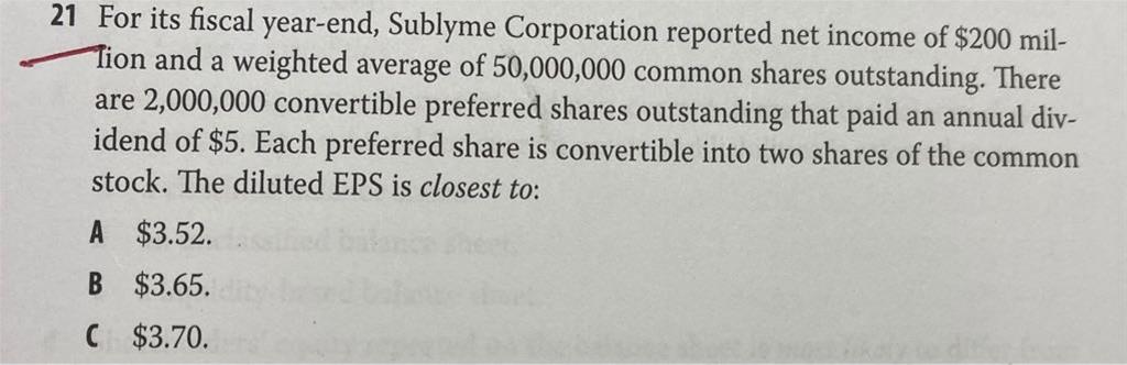请问这道题basic eps该如何计算呢,分母是否是否需要用NI减去2000000x5,2000000x5能否看成是preferred dividens?