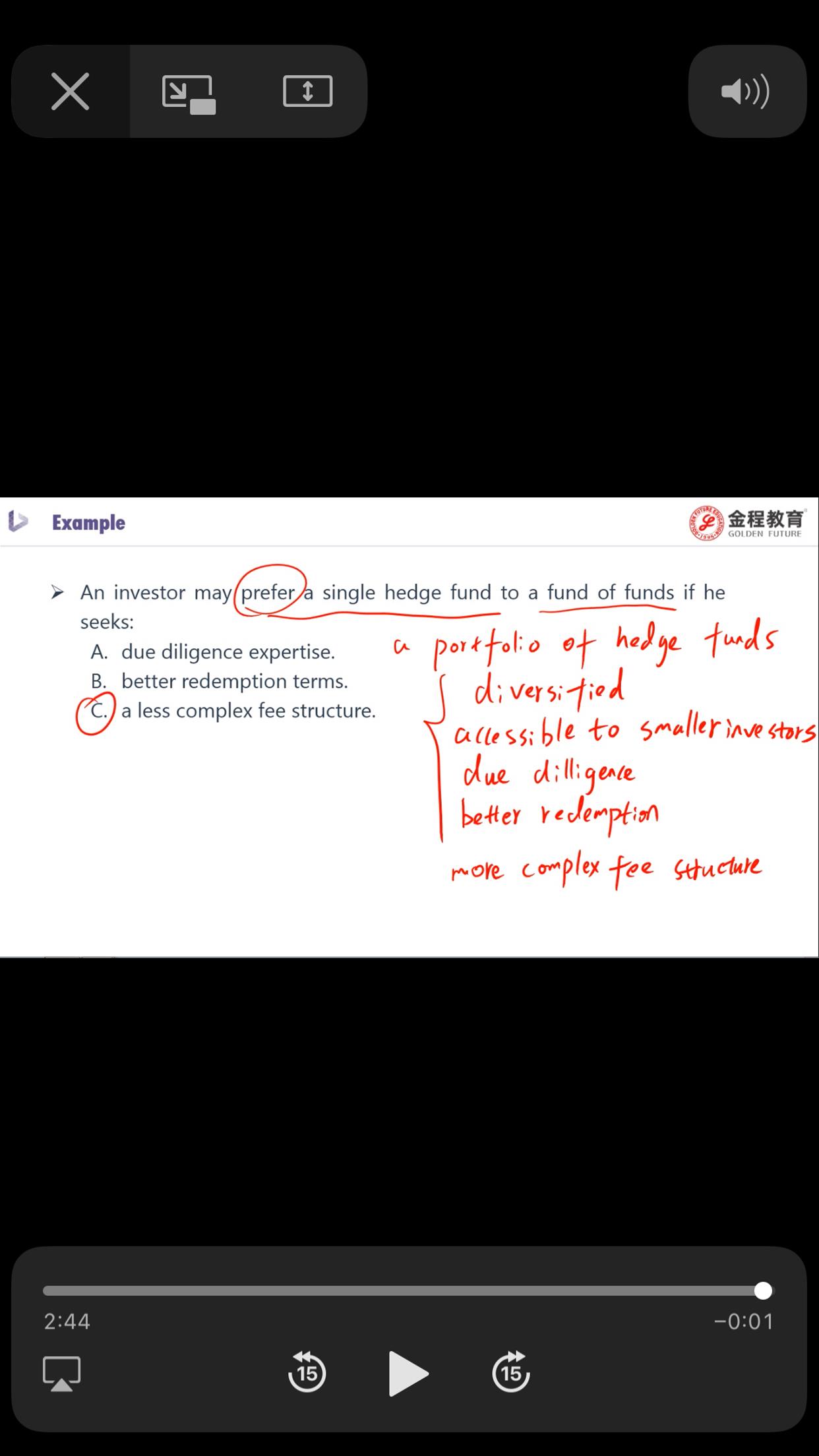 请问老师就是这道题中的due diligence是什么意思?为什么是FOF的优点?是FOF省略哪些步骤了吗?