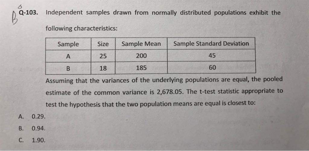 有两个问题想问下老师: 1、对于图中的103题,真实考试中两个独立正态总体的均值检验,是只需要知道是用t统计量,还是t统计量的具体公式也要知道? 2、对于图中的109题,一般就是把题目中的说法认为是想接受的假设,因此放在备择假设Ha对吧?