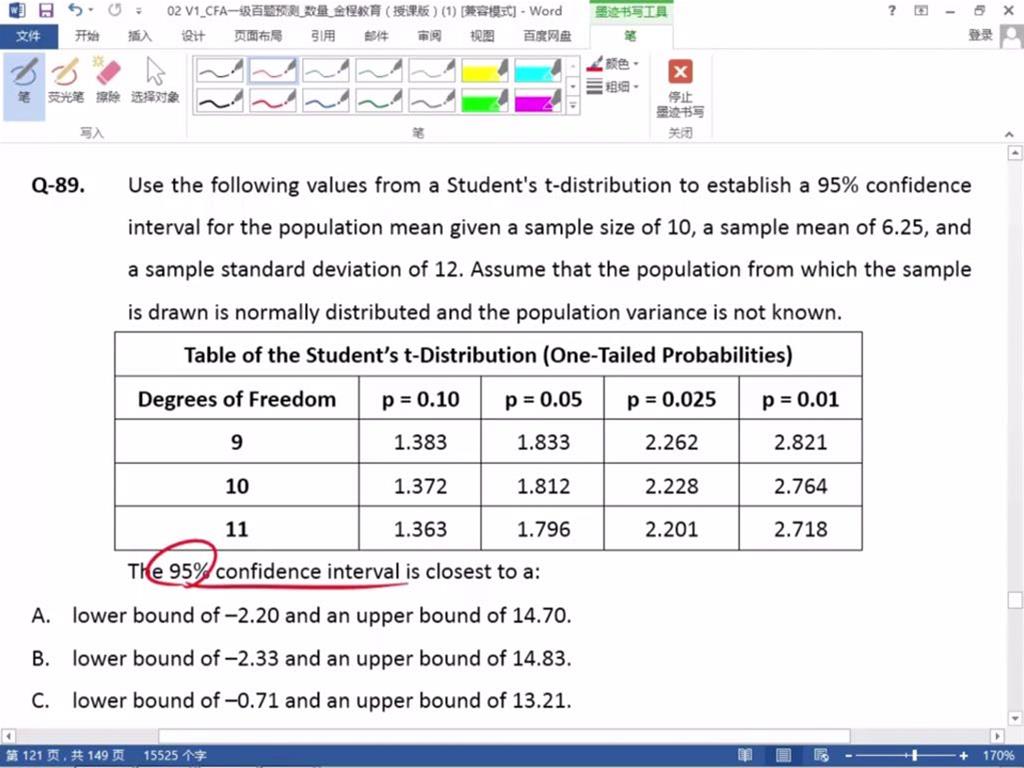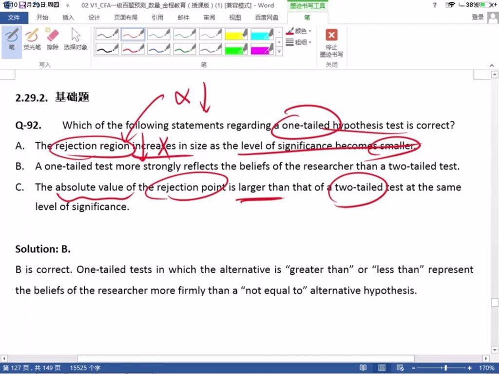 老师,下面这两道题,我有个困惑。为什么89题在考虑单位的t值时,直接为总体的一半,而在93题的选项分析时,单尾必须是总体的一倍,这样拒绝域面积才相等。这两个有什么不同的前提假设呢
