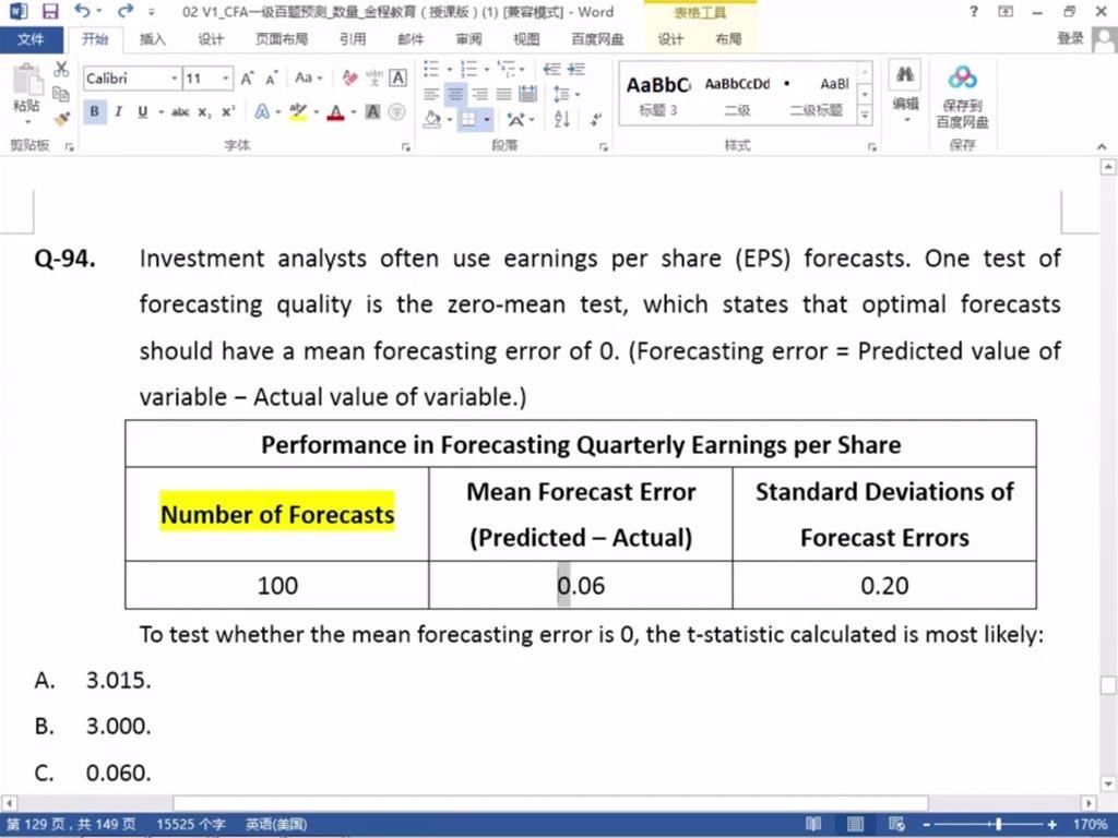 case 3第1题,选项C,即使是随机游走,但是还是用上一期来预测下一期,也相当于是用了AR(1)模型;最后的结果是一样的。因而C选项是不是也是正确答案; 随机游走和AR(1)可以说是等价的吗?