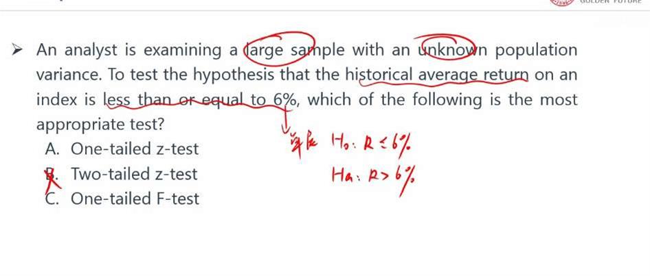 因为Ha是hoped,此处Ha是不是应该是R小于等于6%,而H0才是R大于6%?