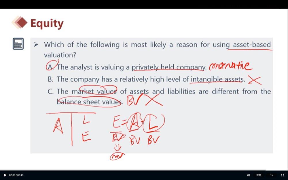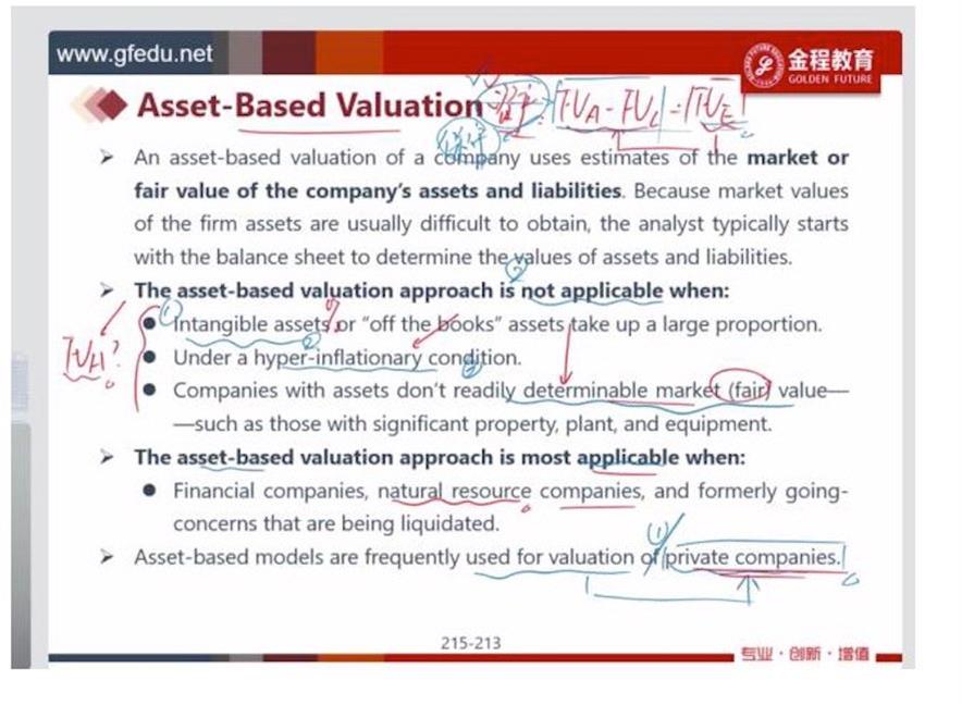 资产估值法的公式,图二右上方的公式不是说用FV吗?怎么题目里又说事用BV呢?