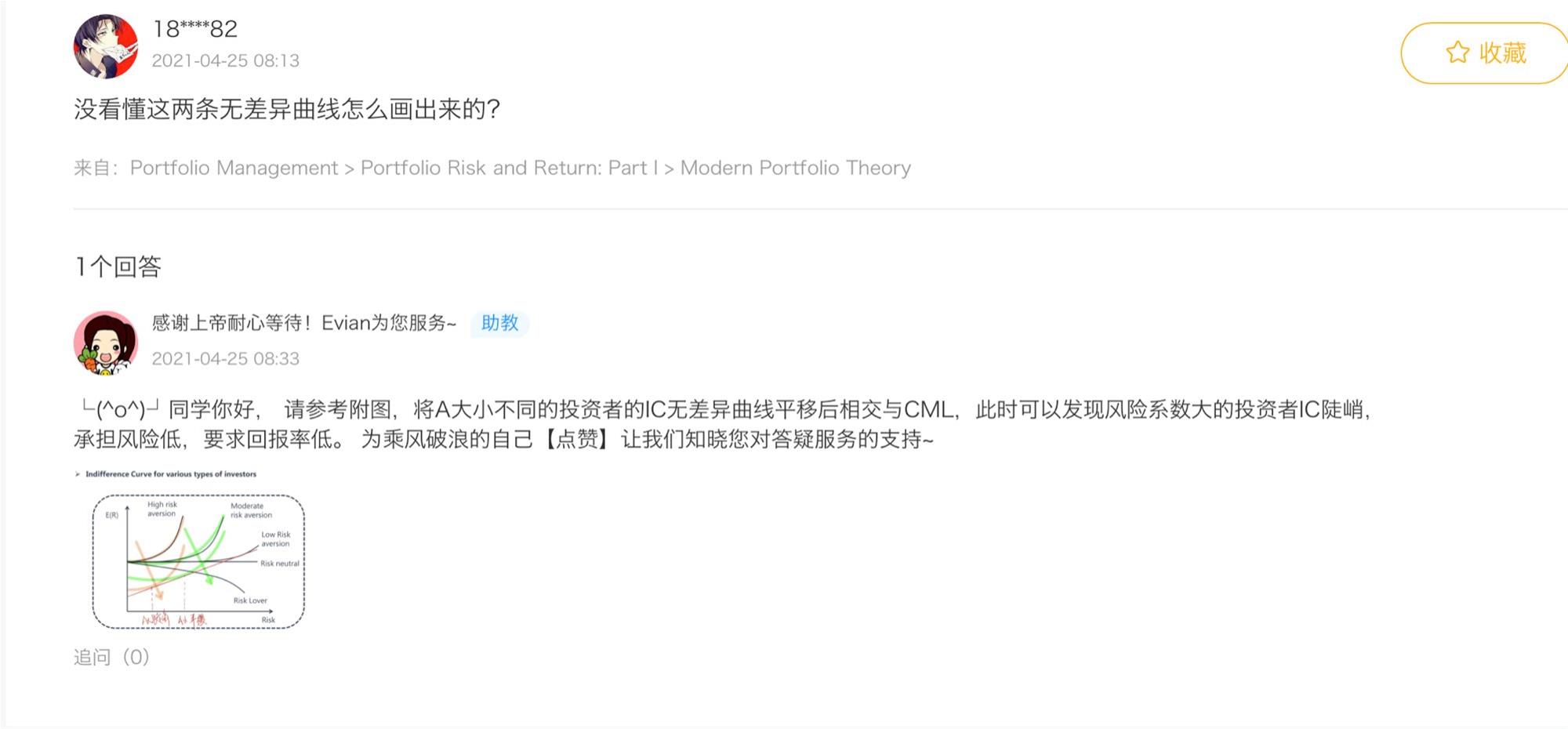 CFA问答包含CFA在线课程、CFA通关课程、CFA试题等所有CFA相关问题,每个问题老师均会在24小时内给出答疑回复哦!