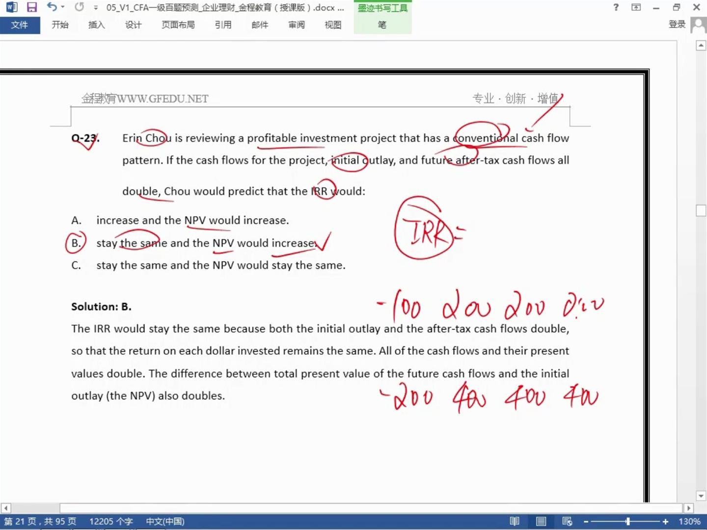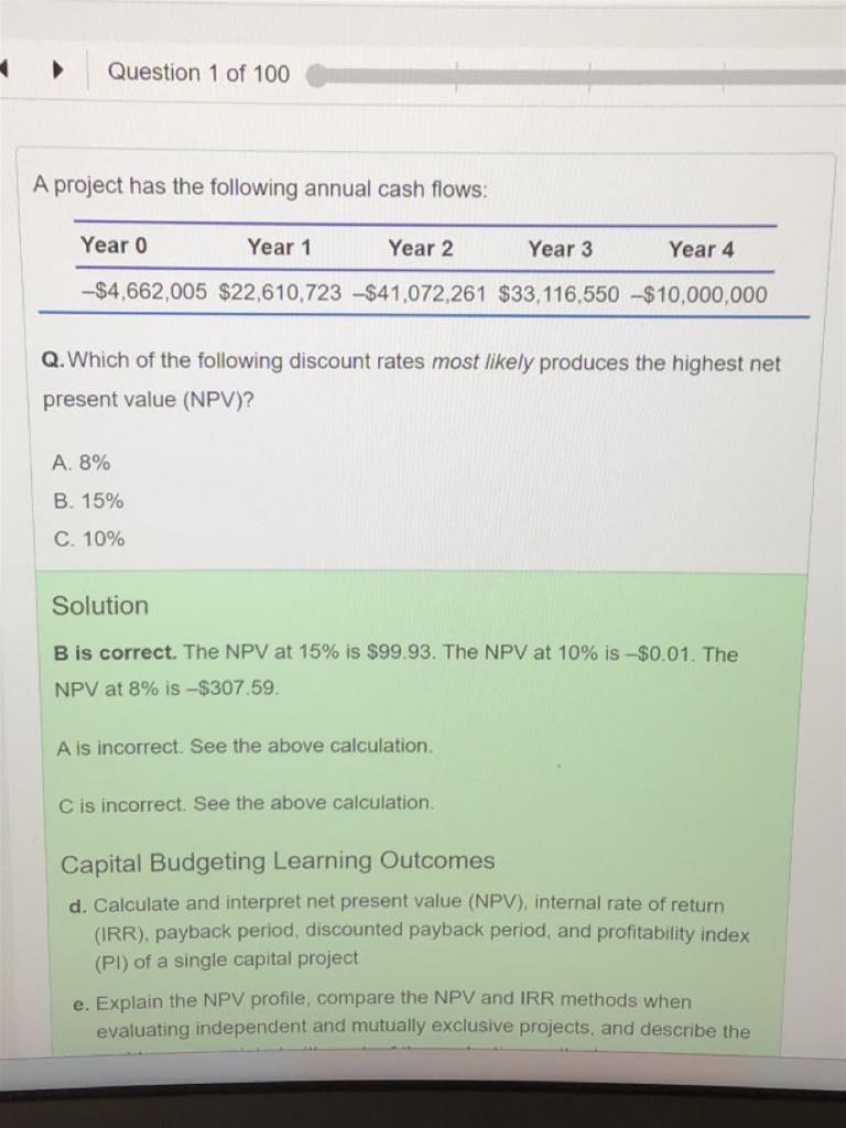 这种题可不可以认为discount rate越高,NPV就会越高呢?这样是不是不需要具体去计算了