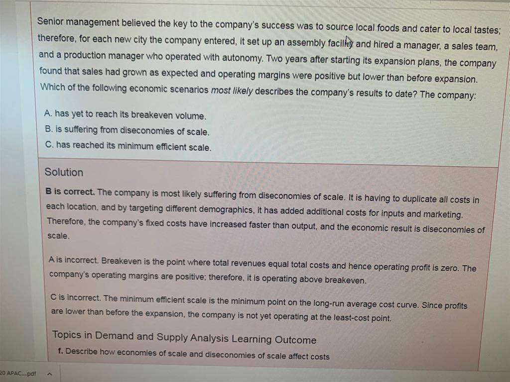 如果已经是diseconomies了那不是已经reached its minimum efficient scale 了吗