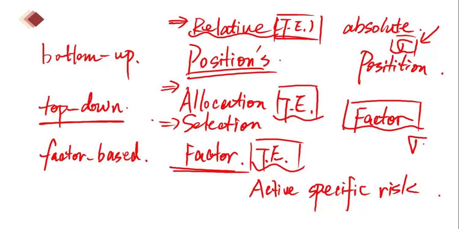 已回答bottom up的各个postion就是里面每个持仓个股是吗?持仓个股的相对风险拆分,benchmark是什么?绝对的标准差,是和平均值比较求出标准差,每个个股有平均值,所以能求出一段时间标准差。那top down呢,用什么benchmark来相对拆分风险,绝对的也可以求出平均值,怎么就不能求出标注差了呢?