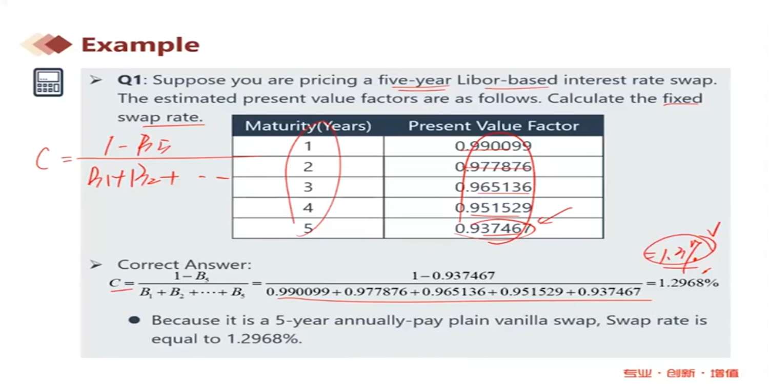 题干中只提到five-year libor-based interest rate swap,如何得知是一年一换?