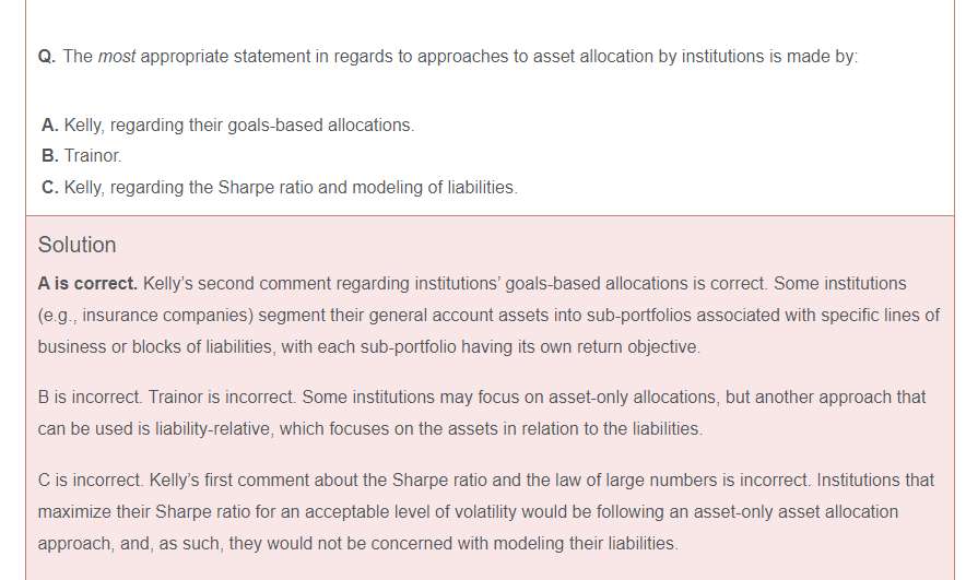 官网题,Trainor: A goals-based approach to asset allocation is appropriate for individual investors, but institutions need to focus either on the asset or liability side of the balance sheet, depending on the nature of their business. Trainor说的有什么问题?focus either on the asset or liability side, 不然还能怎样