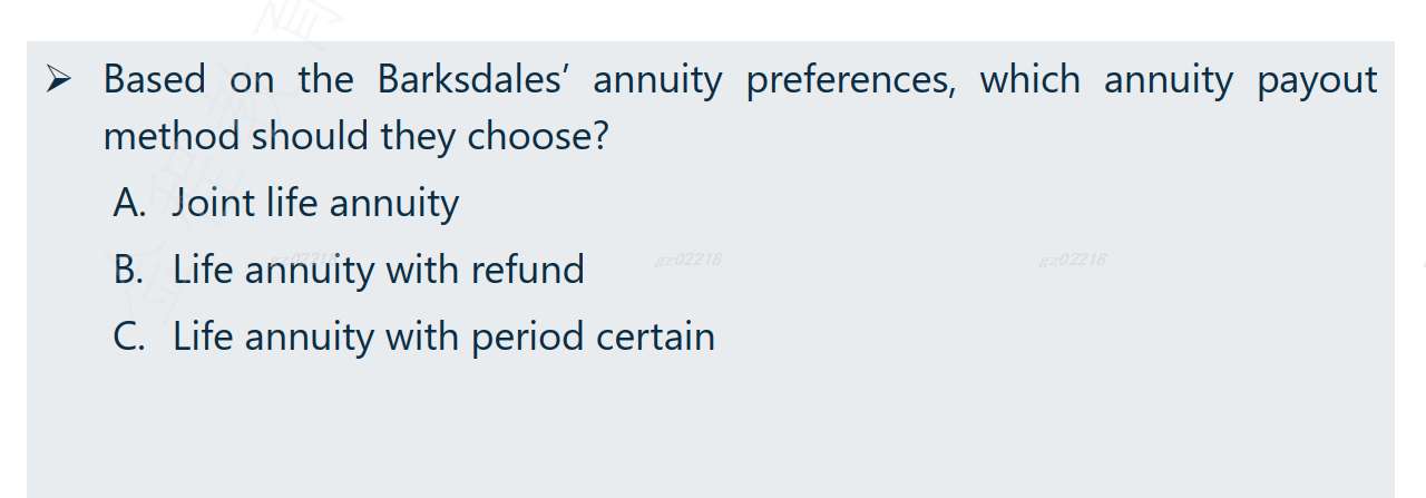 这道题三个选项都有啥特点呀老师,level income stream relative to cost是什么意思?forgo the right to cash out policy是啥意思