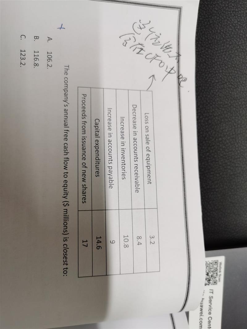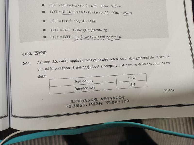 这个题算FCFE的时候是不是不应该算3.2(这是投资活动,不应该含在CFO),这是百题,是不是就没有正确答案了?
