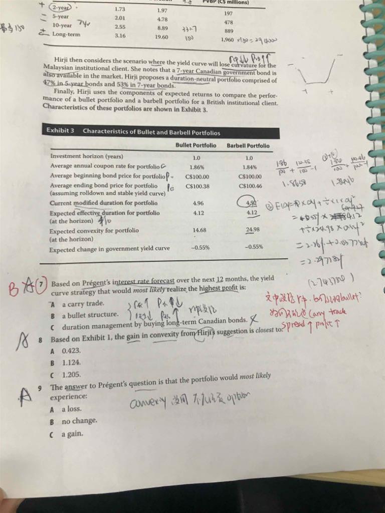 原版书第7题 文中没提对R中的预测 怎么会让Bullet盈利更多? 为什么不能选carry trade 收益率曲线更陡峭不是有利于它吗?