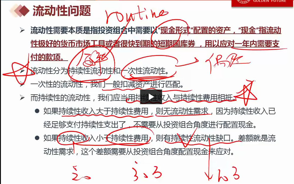 已回答2013年个人IPS关于流动性需求,算的是一次性需求和持续性需求之和。如果是这样的话,2014年那题,一次性需求是85000,但是他们持续性需求是盈余的35000,那累计的流动性需求不应该是两者之差50000吗?为什么2014年这题没有把持续性需求算进去呢?