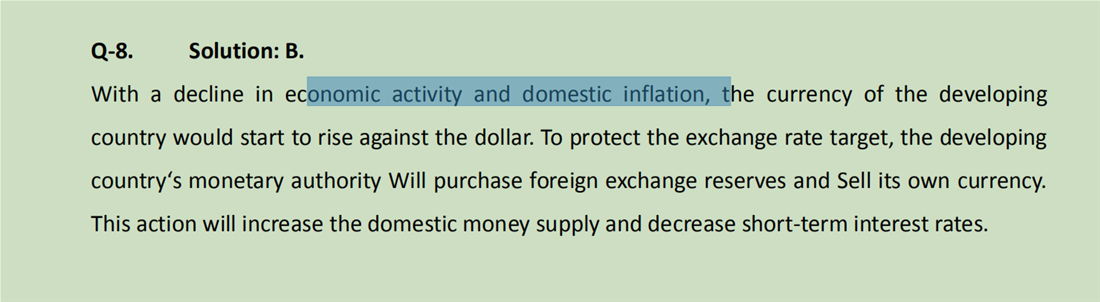 为什么经济活动少了,通货膨胀下降了,本国汇率就会上升呢?本国汇率应该是贬值吧? 第二个问题是是不是因为为了稳定fixed 汇率,所以要加大印钞,才好买外汇,所以money supply增加呢?