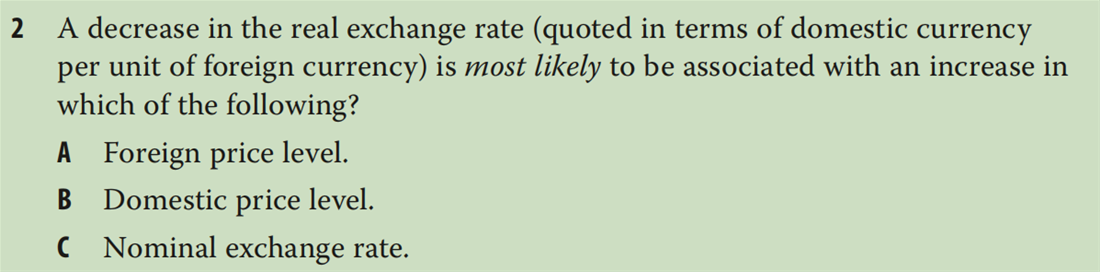 - 老师,第三题答案的意思是:1.因为宽松的货币政策,导致加元利率下跌,导致加元贬值?2.但是,如果利率下跌,也就是分母上的百分比下降,不是会导致价格上升吗?。3.从而短期看是depreciation,但是长期来看,会回归到均值,所以是appreciation?