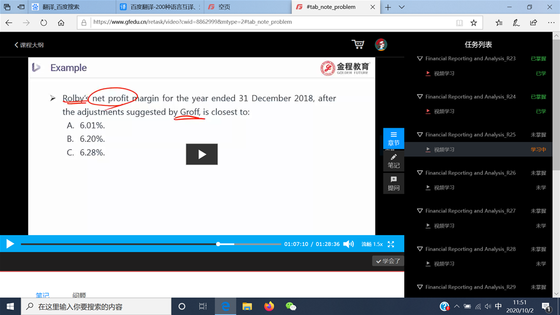 老师,视频1:07分,1.5倍速下的这道case题的小题,我的问题是:【1】Rolby公司本身用的估值方法就是FIFO,表格中NI=327,那这道题在计算Net profit margin时为什么不是327/5442?反而要针对COGS的减值对NI进行一个调整呢?因为我的理解就是该公司用的FIFO法,那表格中的所有数值就应该是FIFO法下计算而出的,可以直接使用。【2】COGS减值了15,反而导致NI上升了15*(1-30%),这个是因为税盾的作用而导致的吗?请老师解答一下,谢谢。