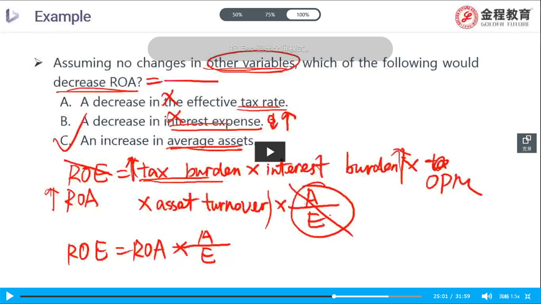 老师,图中这道题的B选项,我的理解是,interest expense 减少了,意味着我们在利息上的开销减少了,那我们的interest burden应该也减少了,请问这种理解错在了哪里?谢谢