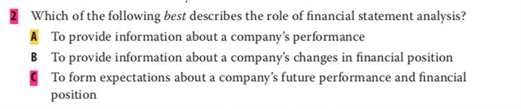 R19课后第二题 1.为什么A和B不对?是因为A,B是financial reporting的作用吗? 2.financial reporting和finacial statement analysis的role有那哪些区别,这种题目要怎么做?