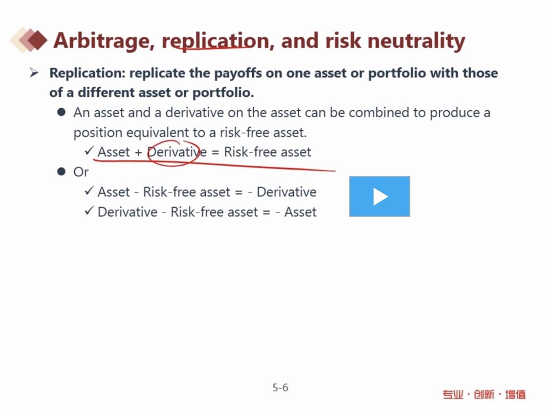 视频中讲到复制的公式,其中的“+”号是买入资产,“-”号是做空资产,举到一个例子,long Equity + short Futures = Risk-free asset,这个例子中用到short Futures,那不就应该是“-”了吗?与Asset + Derivative = Risk-free asset 的“+ Derivative”不是不匹配了?对+与-不是很了解了,请指教,谢谢