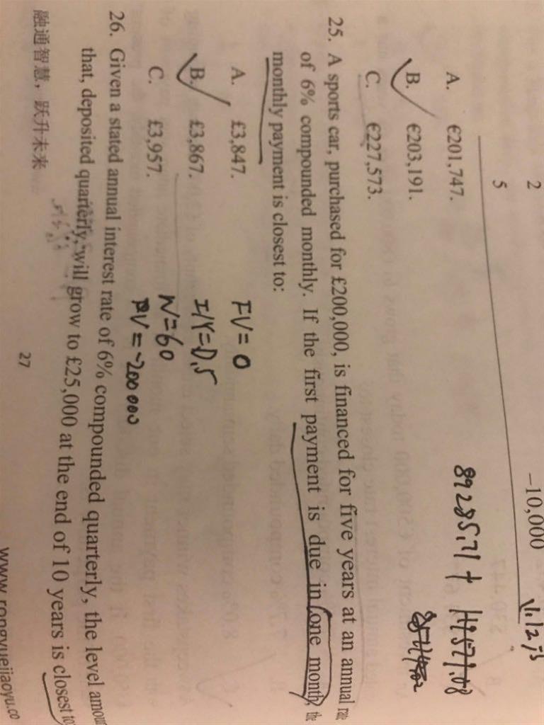 25题干中 first payment is due in one month 是先付年金还是后付年金?