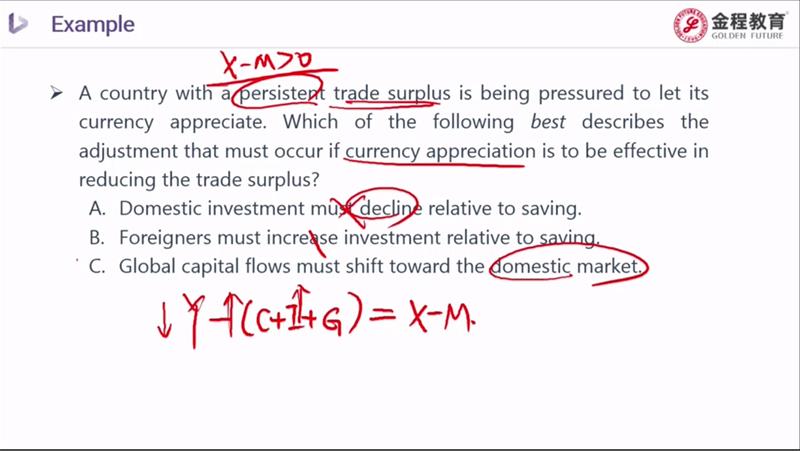 - 第5题,从经济学公式X-M=(S-I)+(T-G)来看,如果经常账户赤字增加,不是意味着该国投资大于储蓄,或政府支出大于税收么,那么整体环境应该是好的,应该有利于资本的流入吧?为什么答案是反过来去赤字减少或盈余的国家呢?