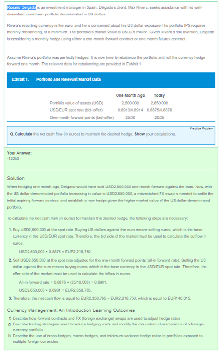查看试题 已回答我想請問一下這兩題roll over做法的差別。在Testa這題是先sell one month forward,一個月之後要roll over 是再sell one month forward。 在Rosario Delgado這題則是先sell one month forward 然後close contract,之後再sell one month forward。 是不是因為hedge amount 不一樣?
