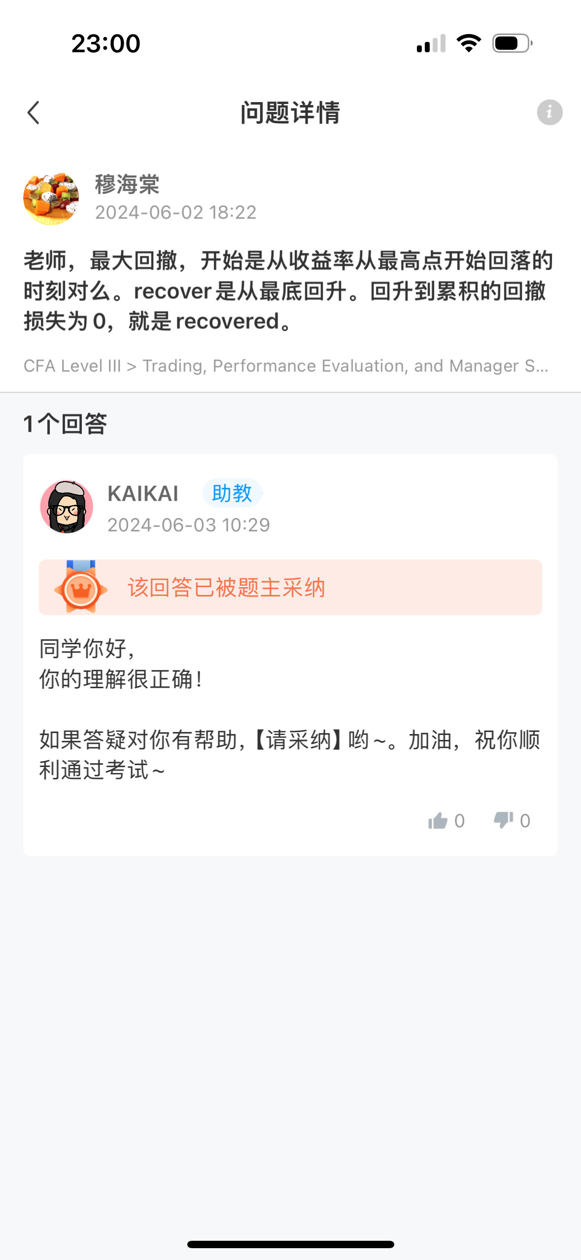 CFA问答包含CFA在线课程、CFA通关课程、CFA试题等所有CFA相关问题,每个问题老师均会在24小时内给出答疑回复哦!