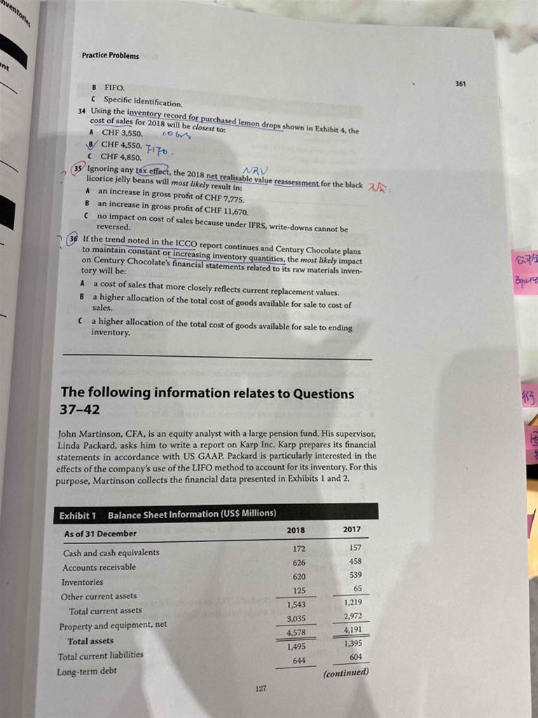 老师,Reading 25 Inventories 课后题35 和36 怎么分析?