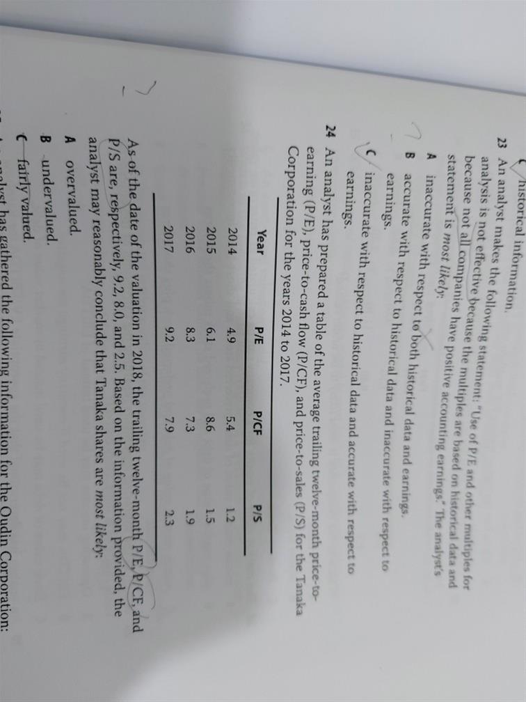 211-23老师23题求翻译 看不懂 24题市净/实现/市销他们三个是什么勾稽关系,怎么用判断高估低估?