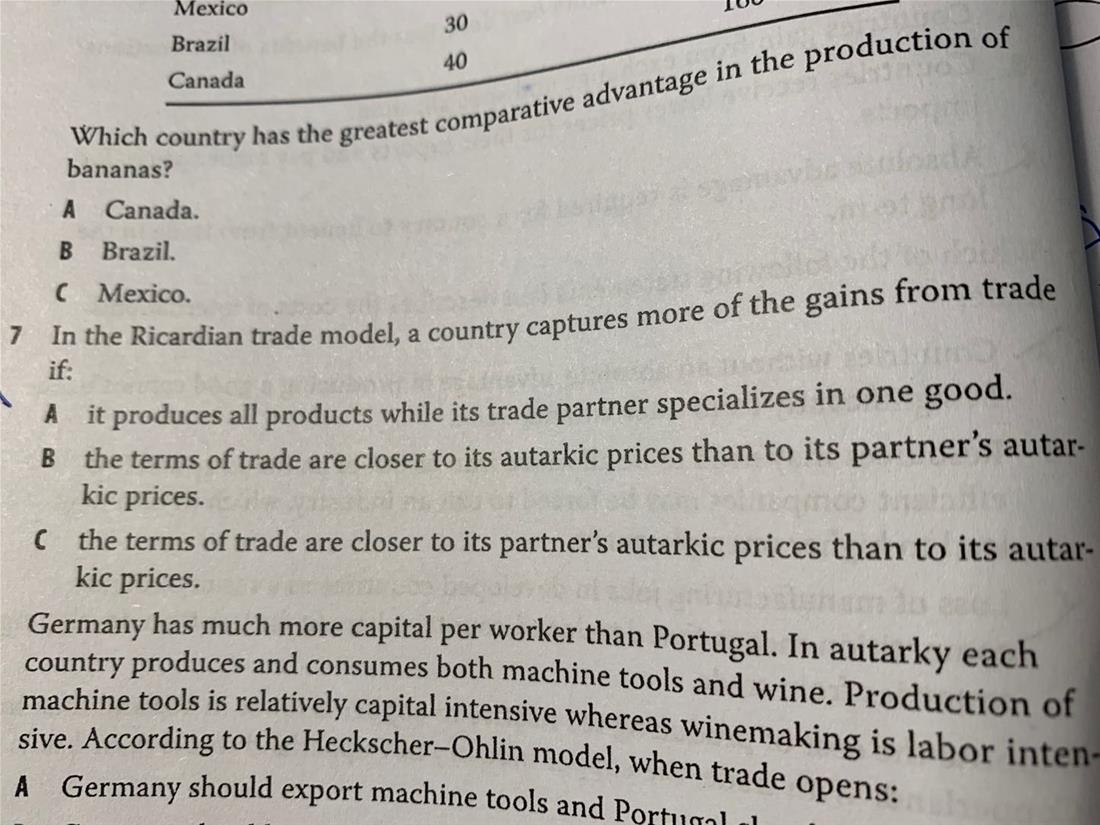 老师好~请麻烦解释一下第7 题。课上老师没有详细解释李嘉图模型,对答案C想表达的意思也不明白。