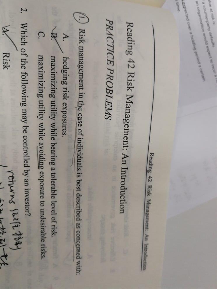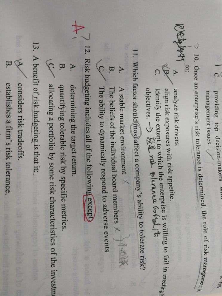 第一题c为何不对?避免所有风险,这样的说法是错的,避免不必要的风险,貌似是对的啊