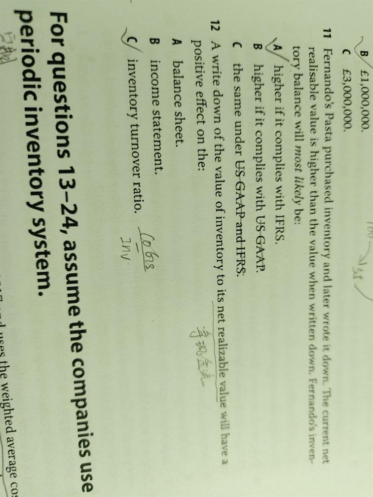 120-5老师 第5题 问存货周转率低的,A定期后进先出那么后面的贵,按公式cogs/#inv,cogs贵的先出去了,大数变成小数,结果肯定变大了,为什么要选A?