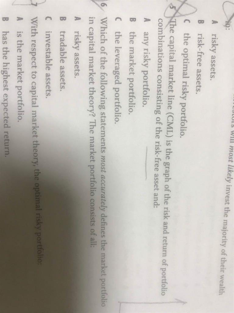 第五题,为什么是any risky potrfoilio 不对,有效前沿不是这个吗?