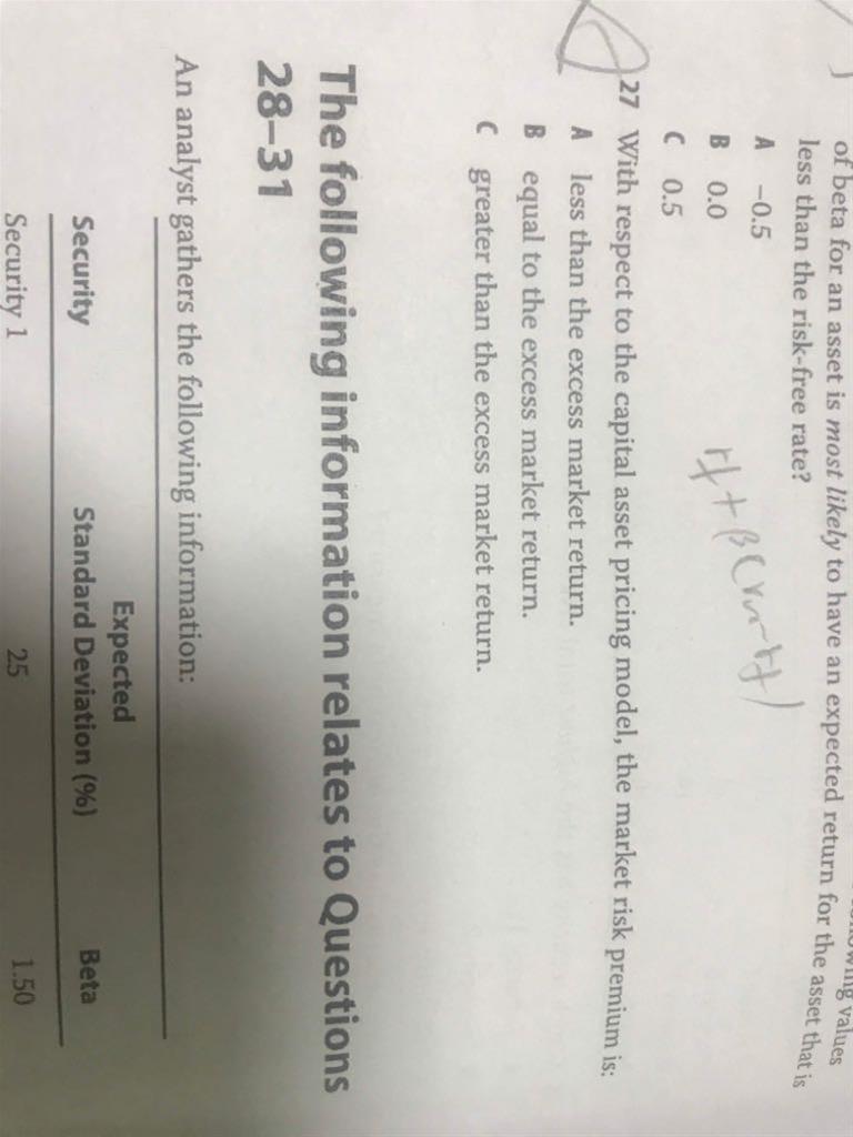 27题,为什么市场风险等于市场溢价