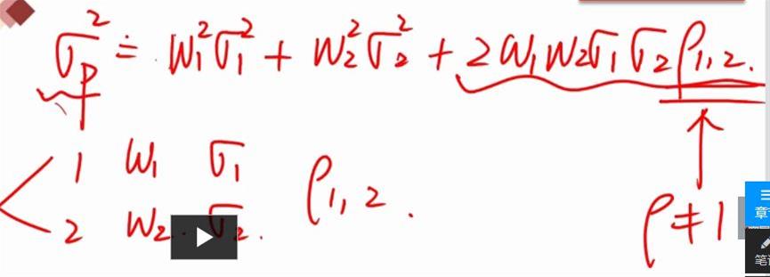 老师请问,这个式子中,为什么相关系数不等于1的时候就能降低风险?并且分散风险?这个点没听懂 1. 相关系数是负无穷到正无穷的吗,还是有一定的取值范围? 2. 如果相关系数=2的时候,是不是就会增加风险呢?