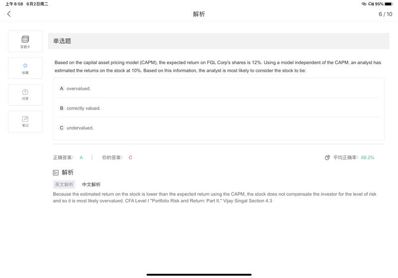 CFA问答包含CFA在线课程、CFA通关课程、CFA试题等所有CFA相关问题,每个问题老师均会在24小时内给出答疑回复哦!